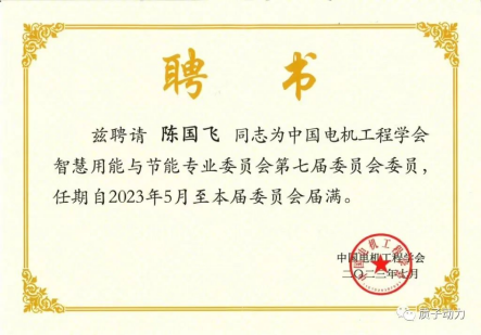 質(zhì)子動力公司董事長陳國飛博士被“中國電機(jī)工程學(xué)會”聘請為智慧用能與節(jié)能專業(yè)委員會第七屆委員會委員